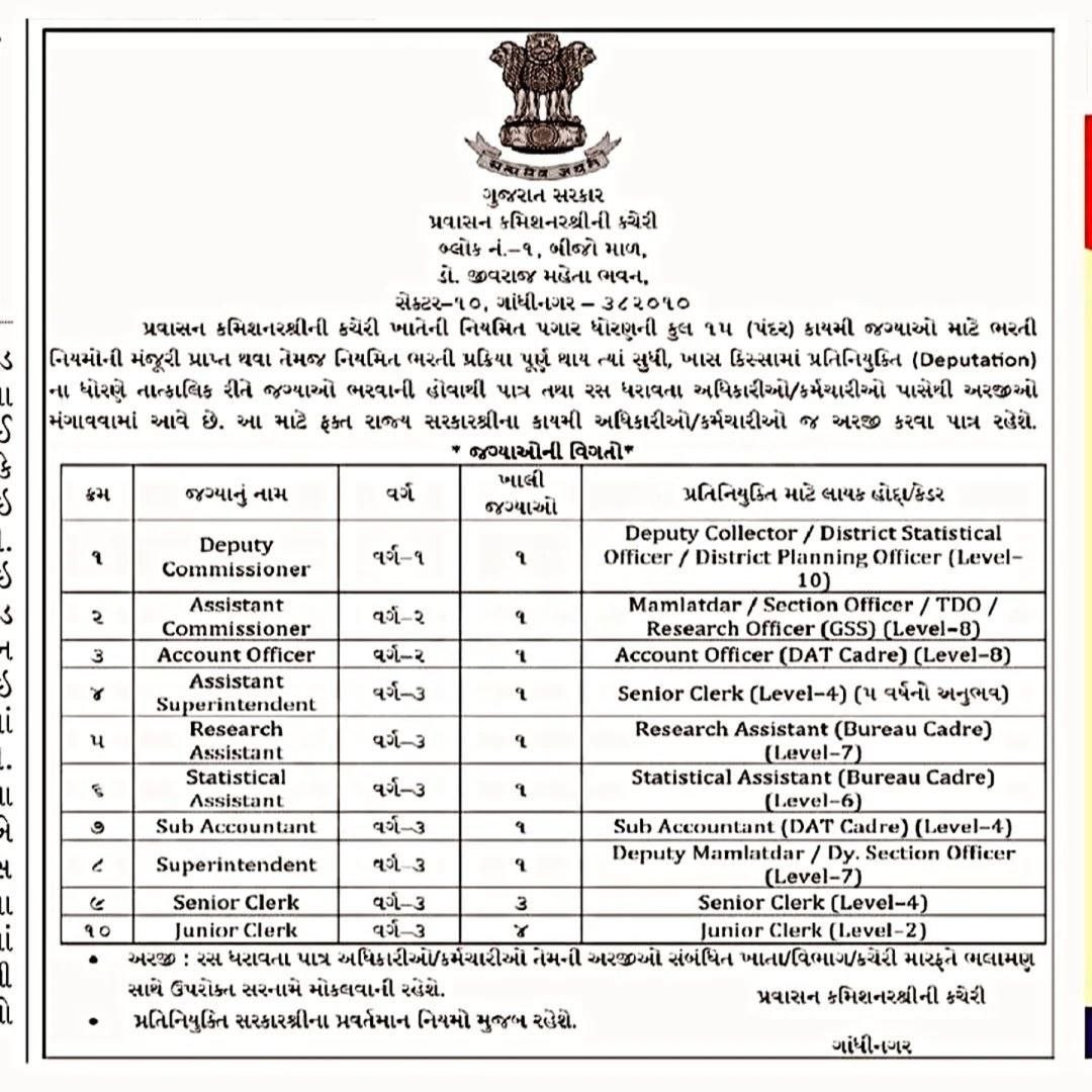 Candidates must be permanent officers or employees of the State Government of Gujarat. Only those who are currently working in equivalent cadres or levels within the state government departments are eligible to apply for these deputation posts. Private candidates or new recruits are not eligible for this specific notification