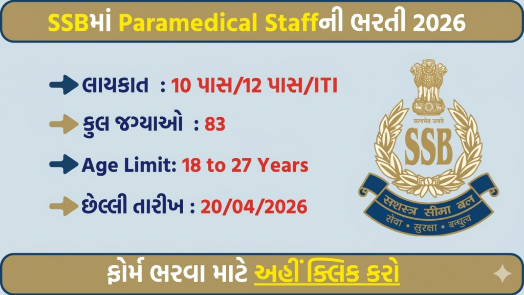 SSB Paramedical Staff Recruitment 2026 announced for 83 vacancies. Check eligibility, age limit, selection process, and apply online before 20 April 2026.
