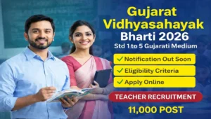 Gujarat Vidhyasahayak Bharti 2026 is a golden opportunity for candidates aspiring to become primary teachers in Gujarat. With 11,000 vacancies and a merit-based selection process, eligible candidates should not miss this chance. Make sure to apply before the deadline and keep all required documents ready.